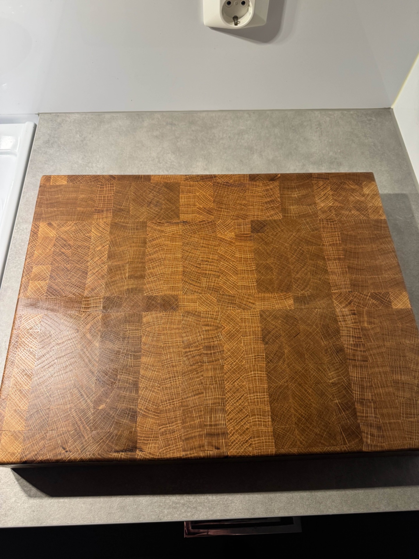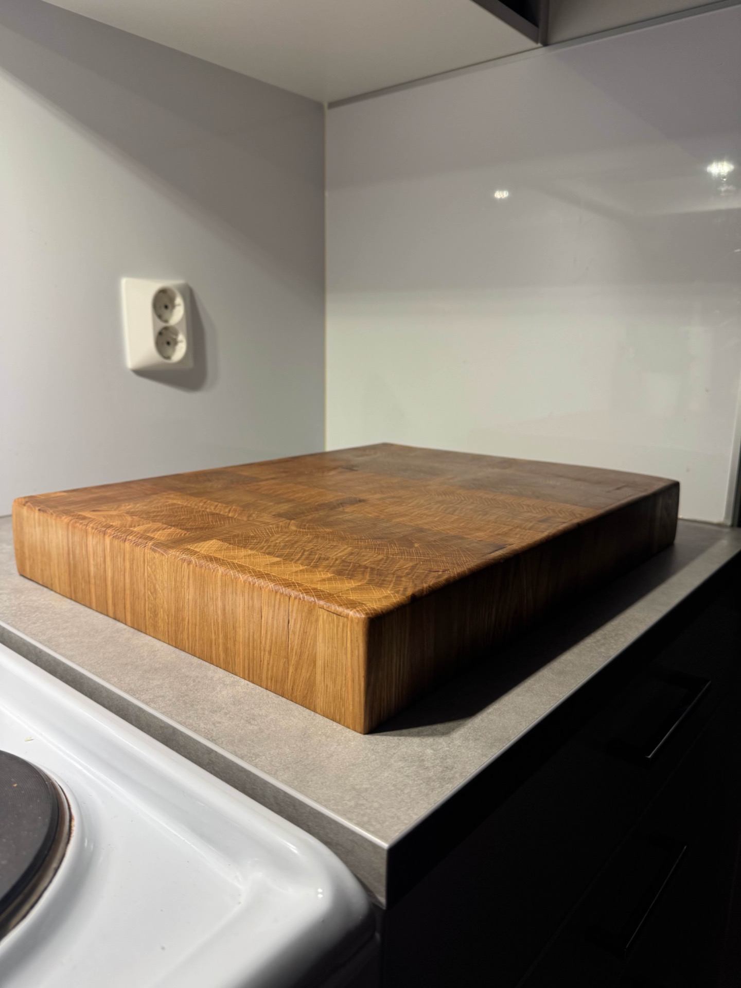 Tämä tyylikäs ja kestävä päätypuisesta tammesta valmistettu leikkuulauta on suunniteltu kovaan käyttöön ja näyttämään upealta keittiössä. Päätypuiden ainutlaatuinen rakenne tekee laudasta erityisen kestävän veitsen jälkiä vastaan, sillä puun kuidut sulkeutuvat luonnollisesti käytön jälkeen.