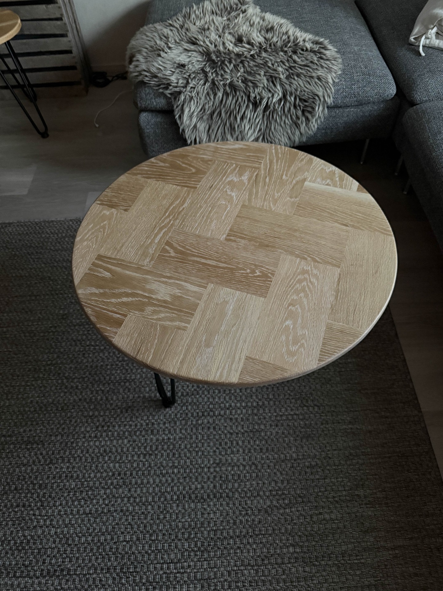 Tuo olohuoneeseesi modernia eleganssia tällä kauniilla pyöreällä sohvapöydällä. Luonnollisen vaalea puupinta kalanruotokuvioinnilla tekee jokaisesta pöydästä uniikin, ja yhdistyy saumattomasti monenlaiseen sisustustyyliin.